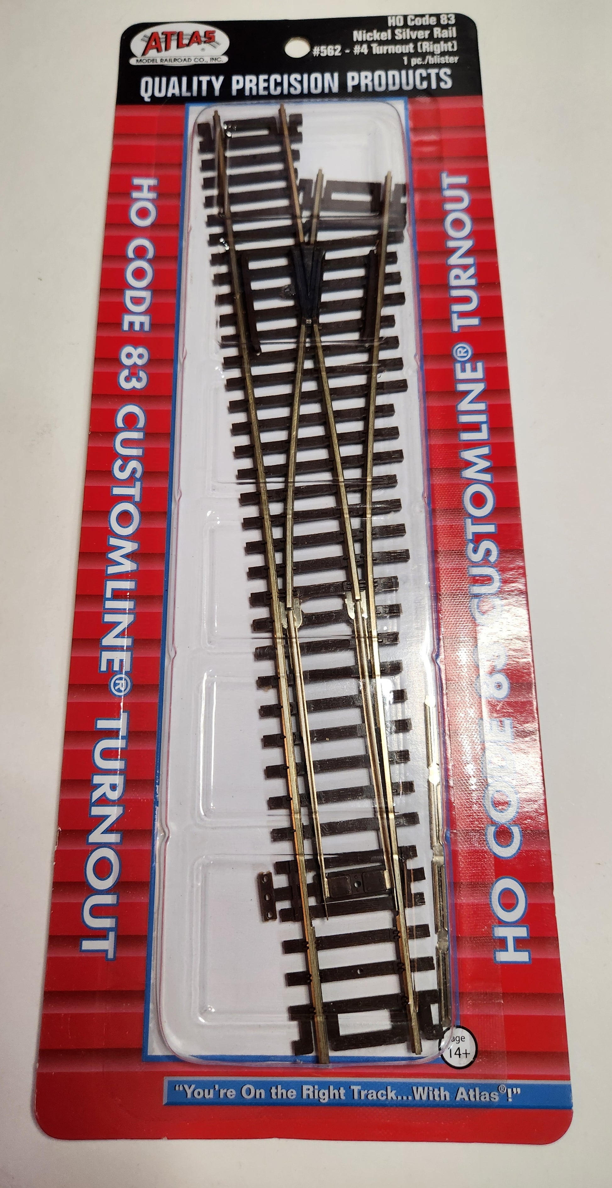 Atlas #562, #4 Right Hand turnout. Code 83 Nickel silver rail