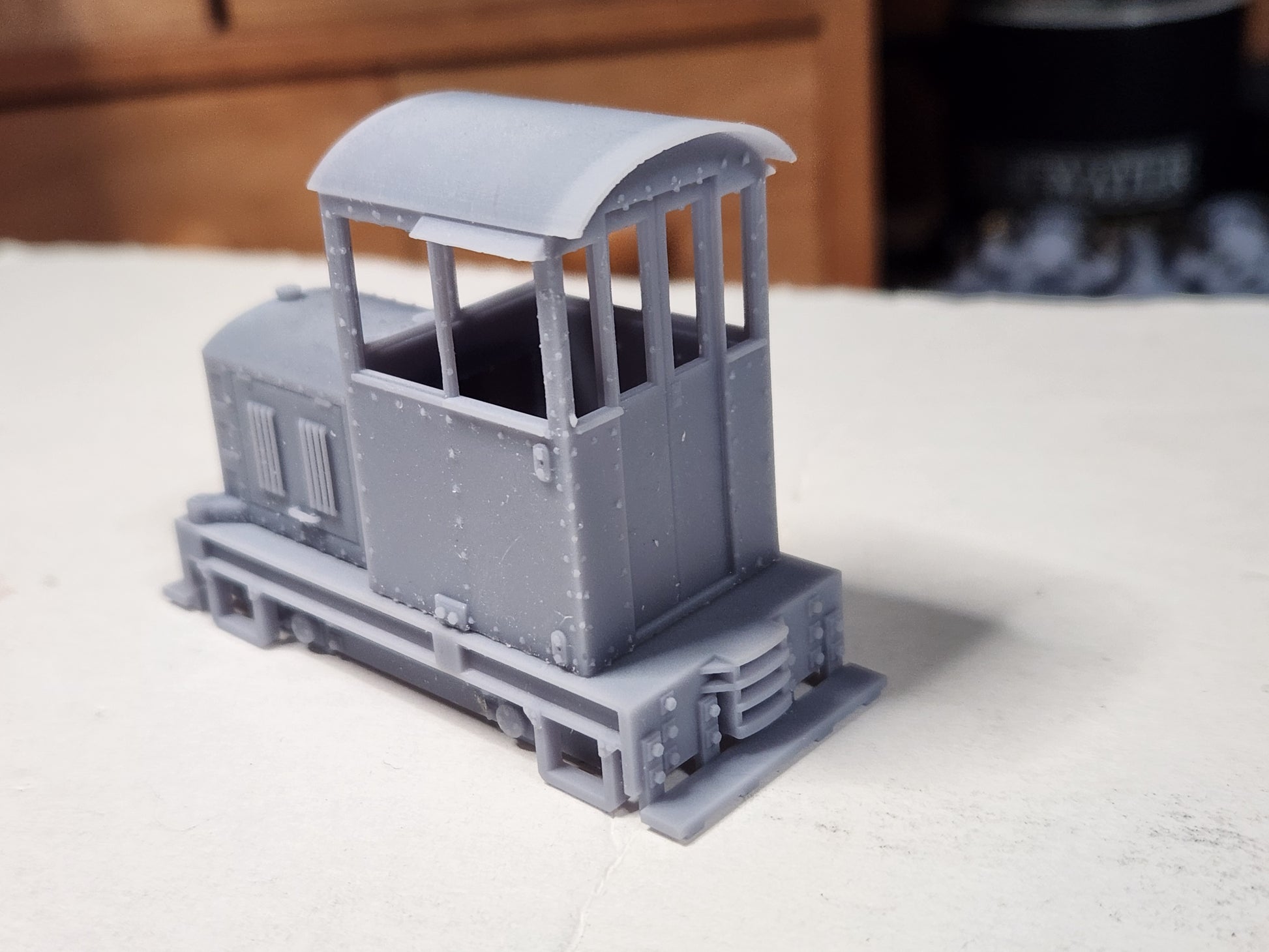 This is an On18 freelance gas switcher kit, 3D printed in Resin. It is designed to operate on the Kato 11-109 chassis. This kit consists of Chassis, cab, hood, 3d printed link and pin couplers, as well as a piece of .020" plexiglass for windows and .020" wire for grab irons. Requires Kato 11-109 mechanism(Not Included). The Coupler height is set at 5.5mm which is the N scale height. Will accept Wiseman Model services link and pin couplers.