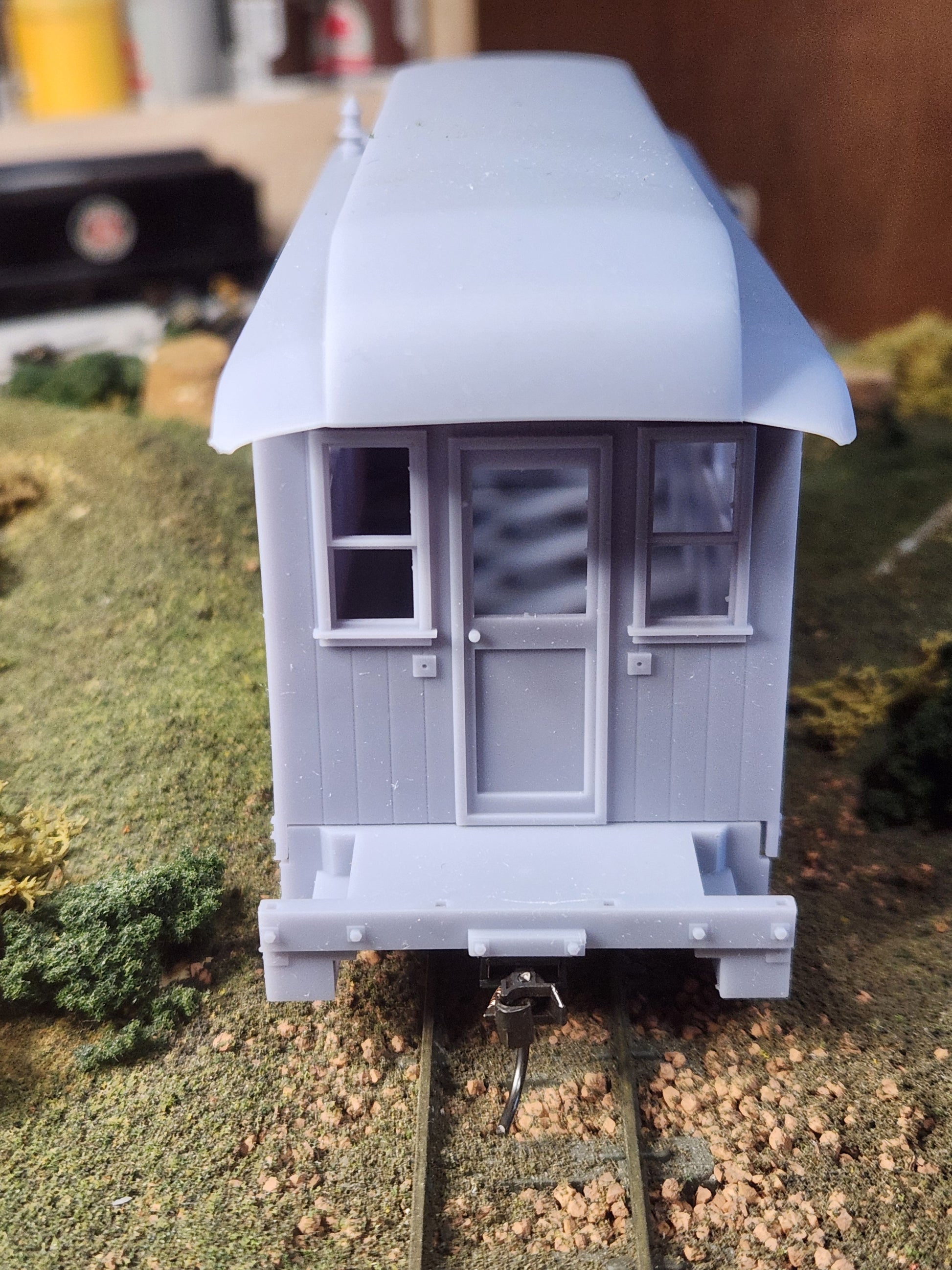 Want to move passengers on your railroad? This On30 short coach car kit can handle it. It is 3D printed and is designed to utilize Bachmann low arch bar trucks, or our own printed passenger trucks, and Kadee #5 or #148 couplers. This kit includes the body, chassis, 3d printed passenger trucks, handrail stanchions, a 3d printed brake wheel, .020" plexiglass for windows, .020" wire for grab irons and hardware for attaching trucks and couplers. Does not include wheel sets and couplers. This kit will need final cleaning, surface prep and painting. If you would like modifications or custom work just ask.